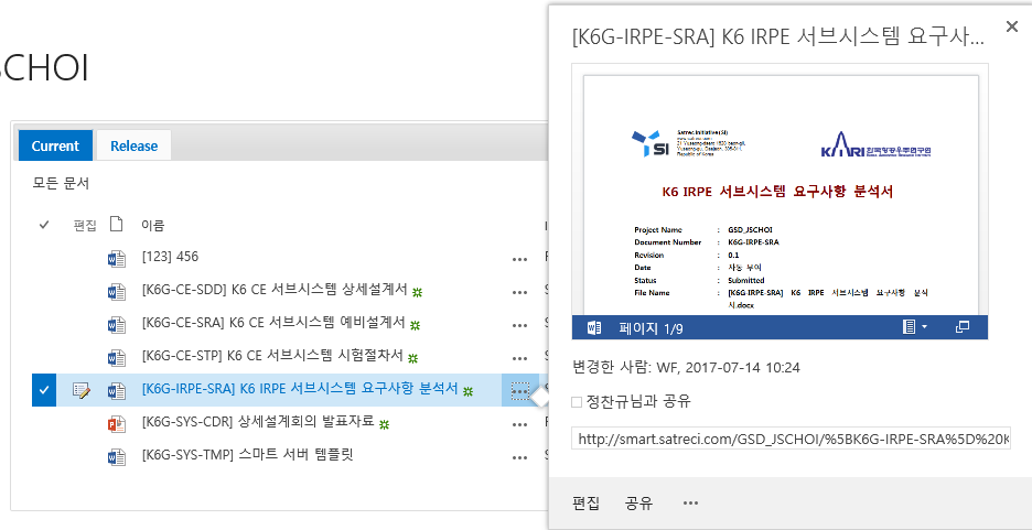 - 브라우져 파일 이름: [K6G-IRPE-SRA] K6 IRPE 서브시스템 요구사항 분석서 (확장자 명은 나오지 않지만 링크 정보를 보면 'docx' 임을 알 수 있음)