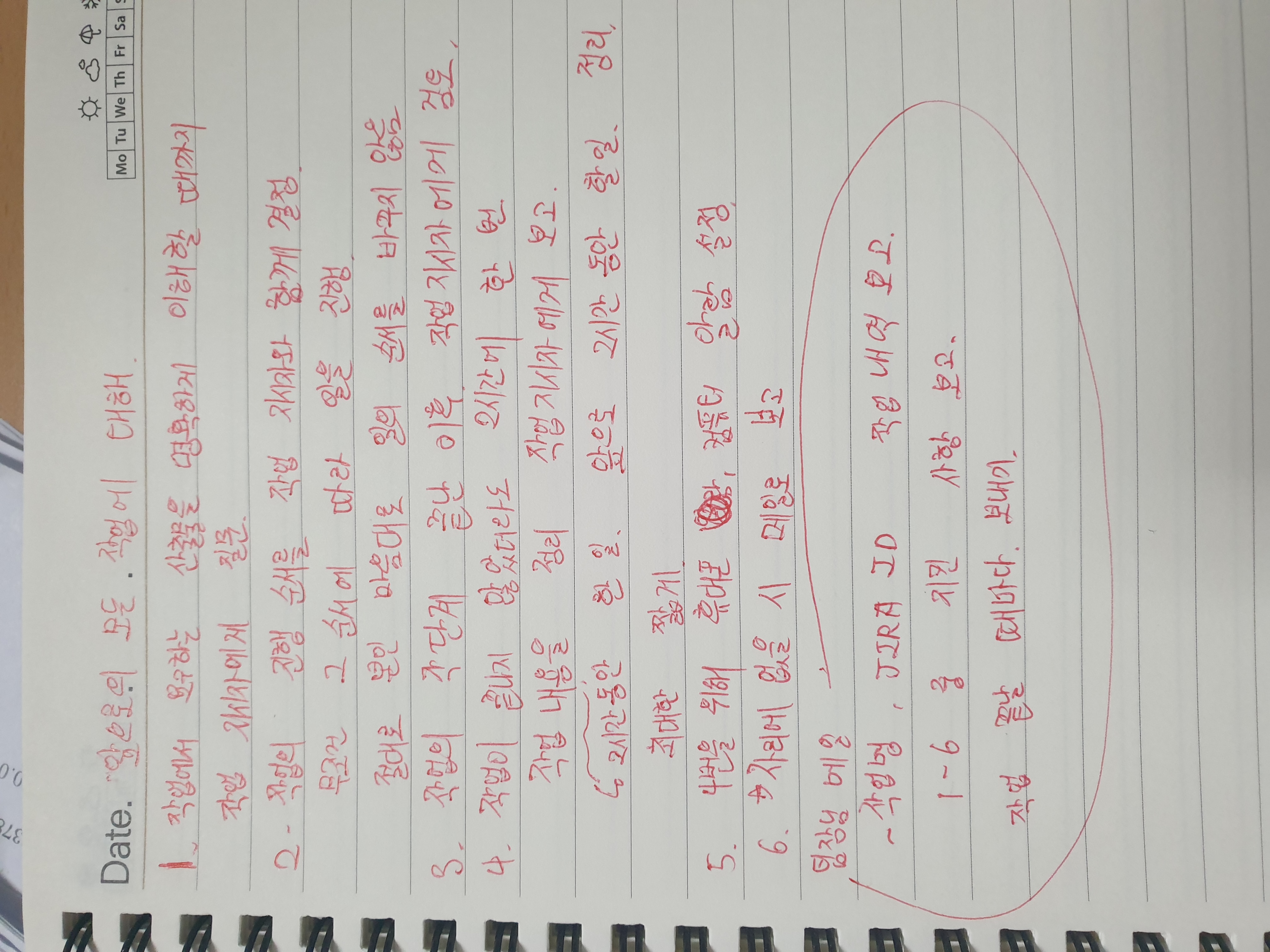 - 1~6번까지 작업 수칙을 만들어서 지키기로 함 (사진 참고)