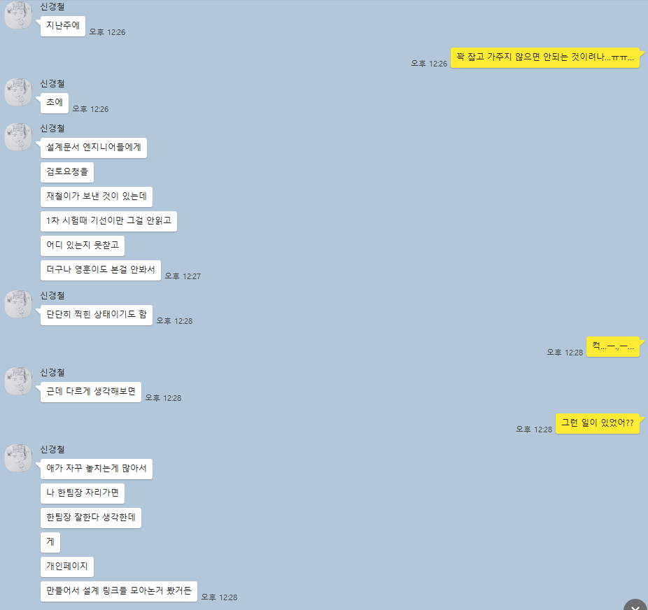 - 이영란 PM 과 신경철 팀장이 먼저 만나서 이야기한 것은 신경철 팀장이 찾아간 것이었음