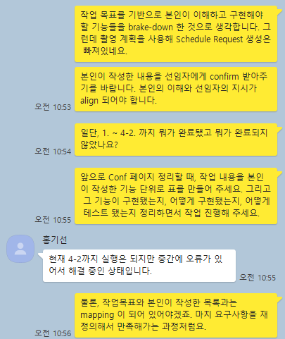 - 이슈를 적어놓고 선임자에게 보고하지 않은 부분에 대해서 뭐라고 했음