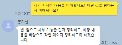 - 작업보고 늦은 사유에 대해서 설명 (작업이 애매하게 끝나서 그랬다고 했고 내가 그렇다하더라도 종료일과 보고일이 3일 차이나는 것은 잘못되었다고 이야기해줬음)