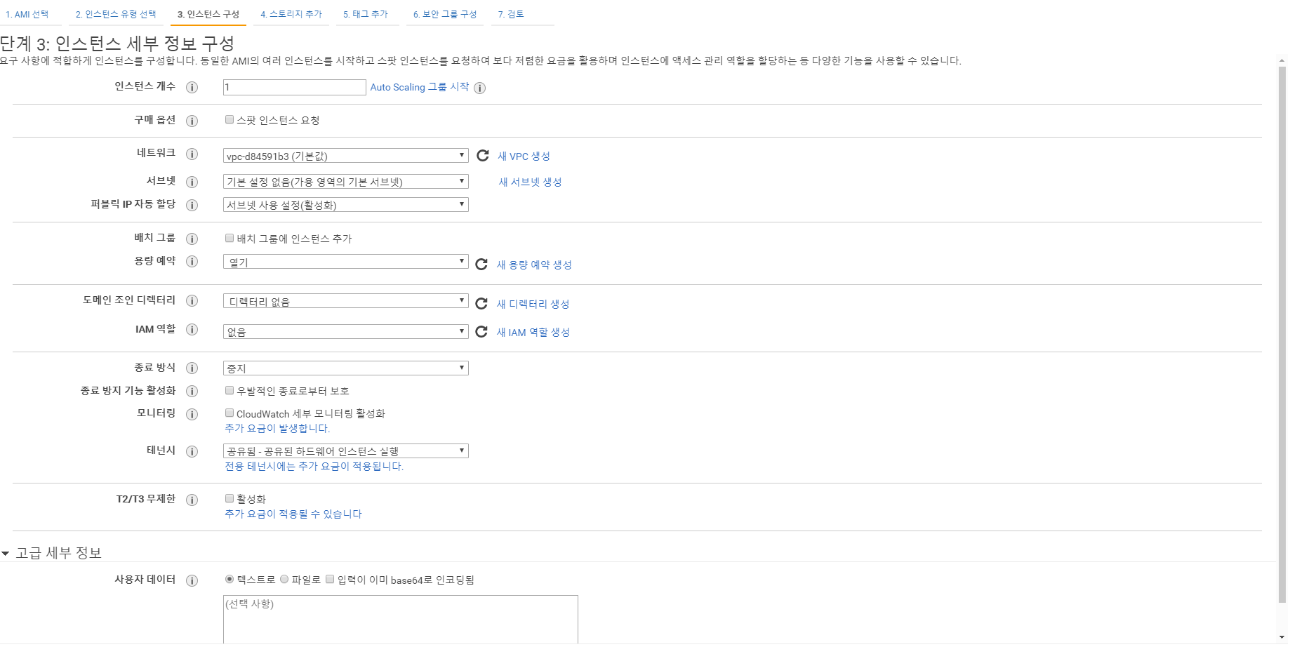 단계 3: 인스턴스 세부 정보 구성 - 기본 값 그대로 유지