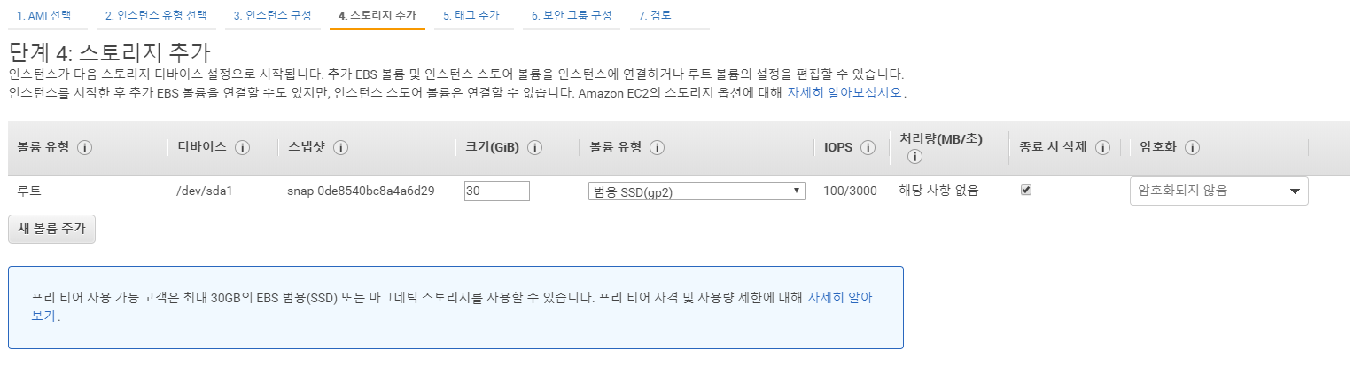단계 4: 스토리지 추가 - 기본 값 그대로 유지