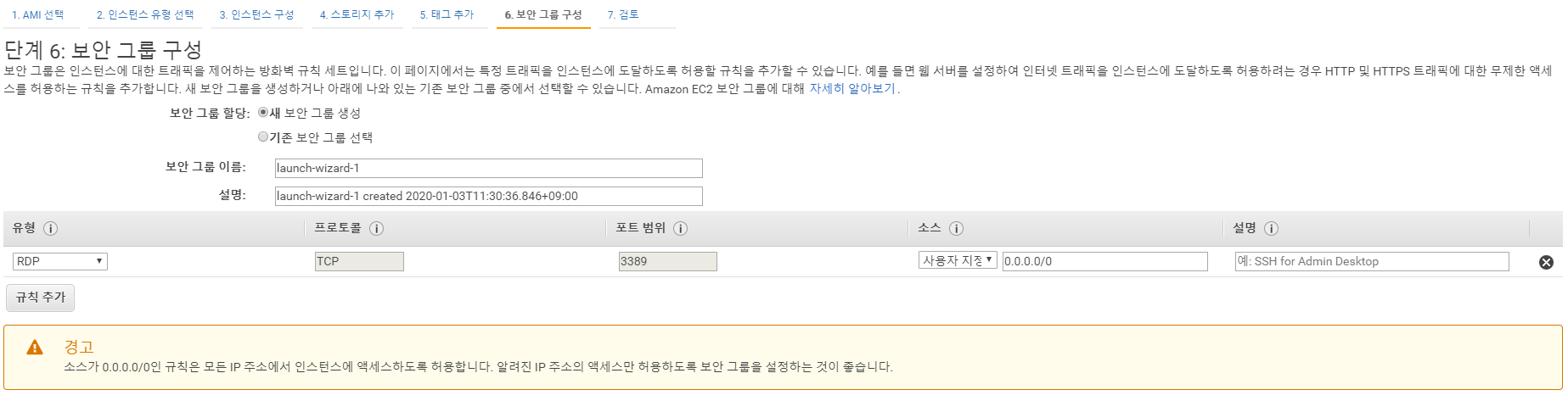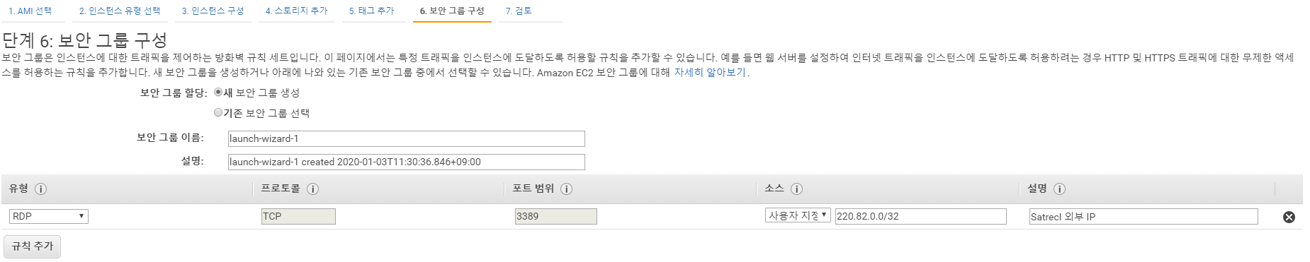 단계 6: 보안 그룹 구성 - 회사 IP 만 허용하도록 설정 (