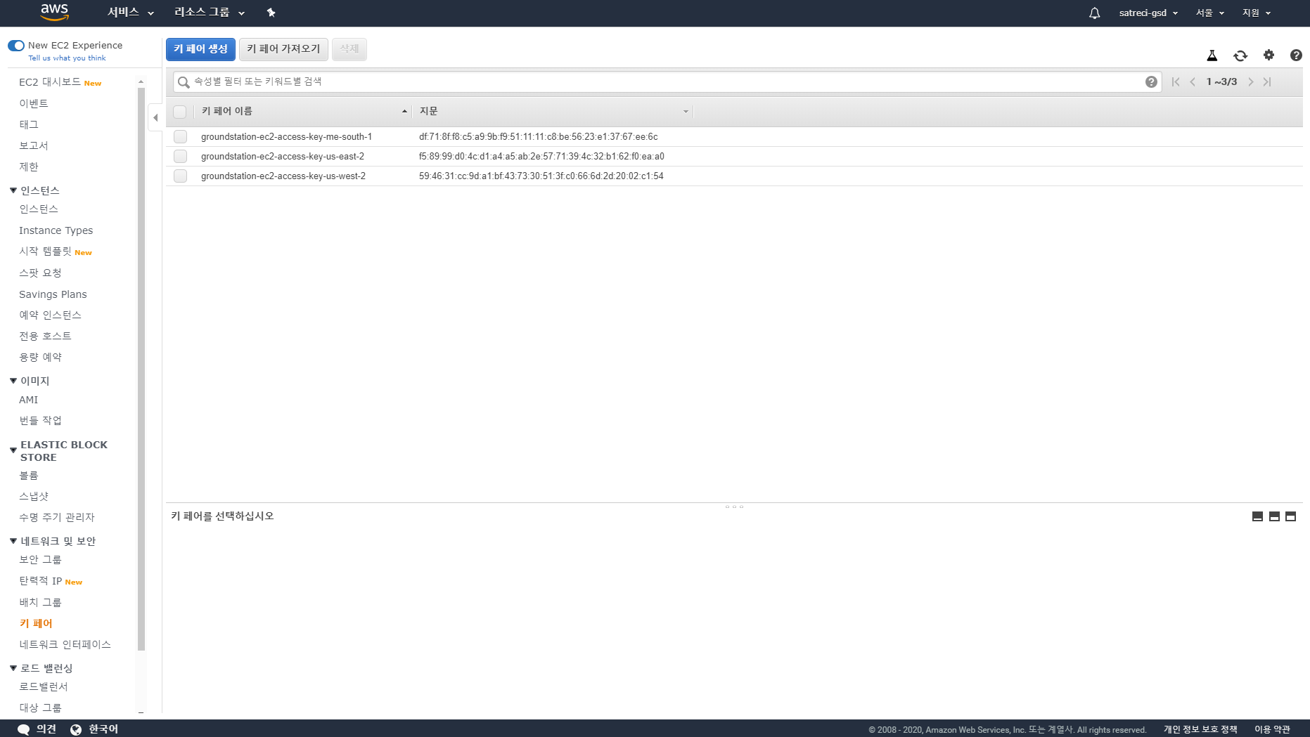 <키 페어 생성> 을 통해 아래 이름을 3개 생성