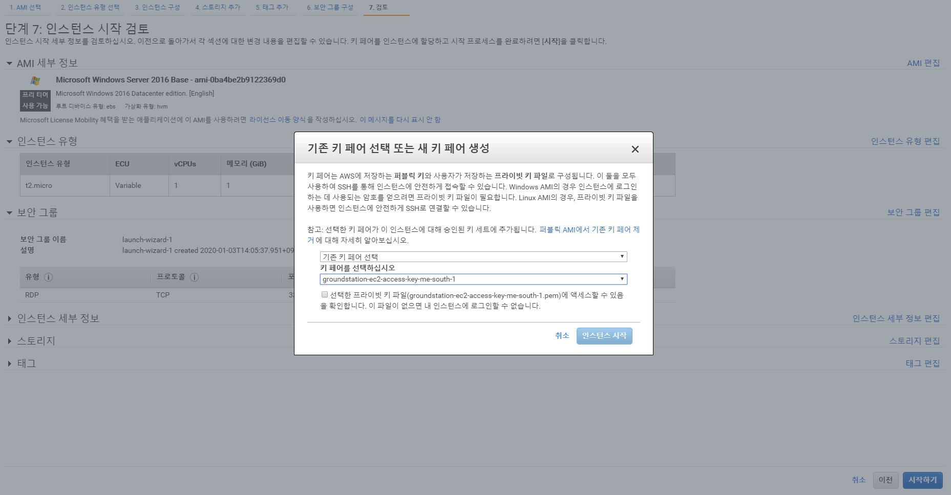 기존 키 페어 선택 또는 새 키 페어 생성 - 이전에 생성한 키 페어 중 바레인(me-south-1) 정보 선택