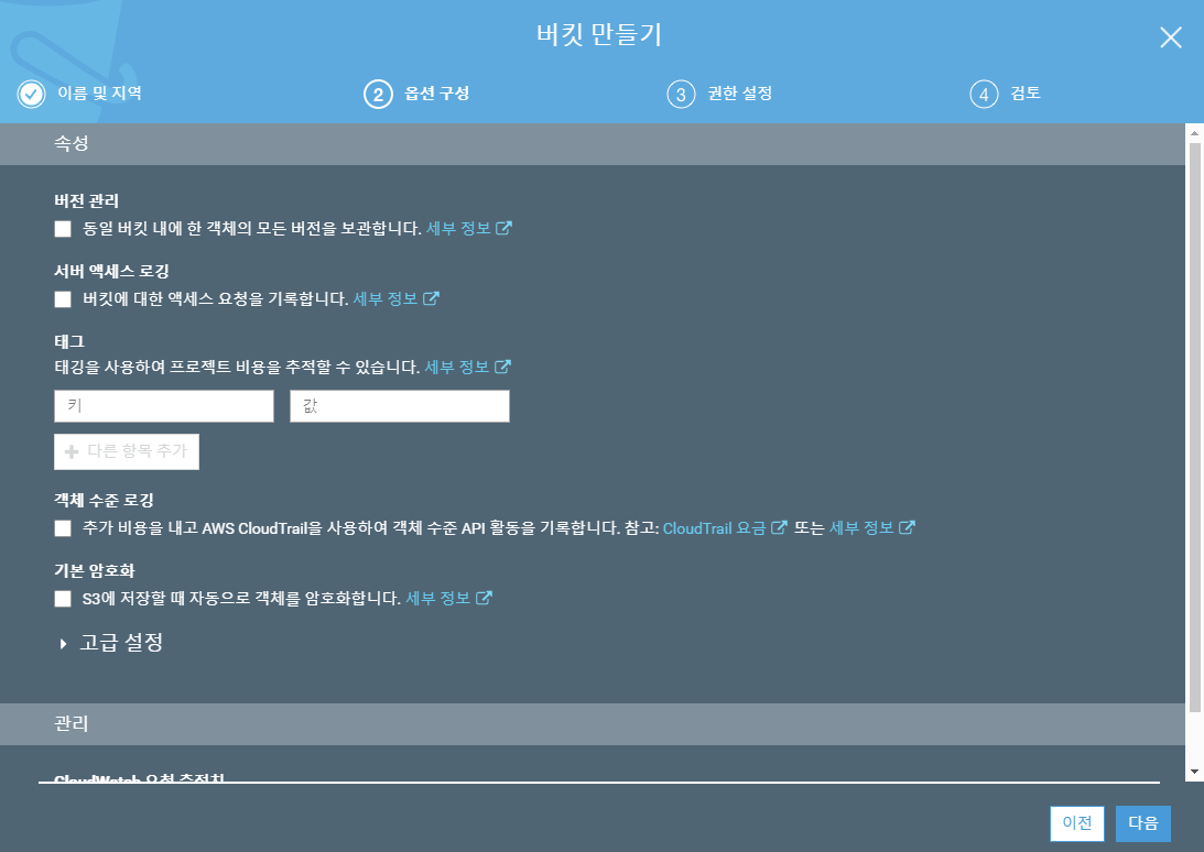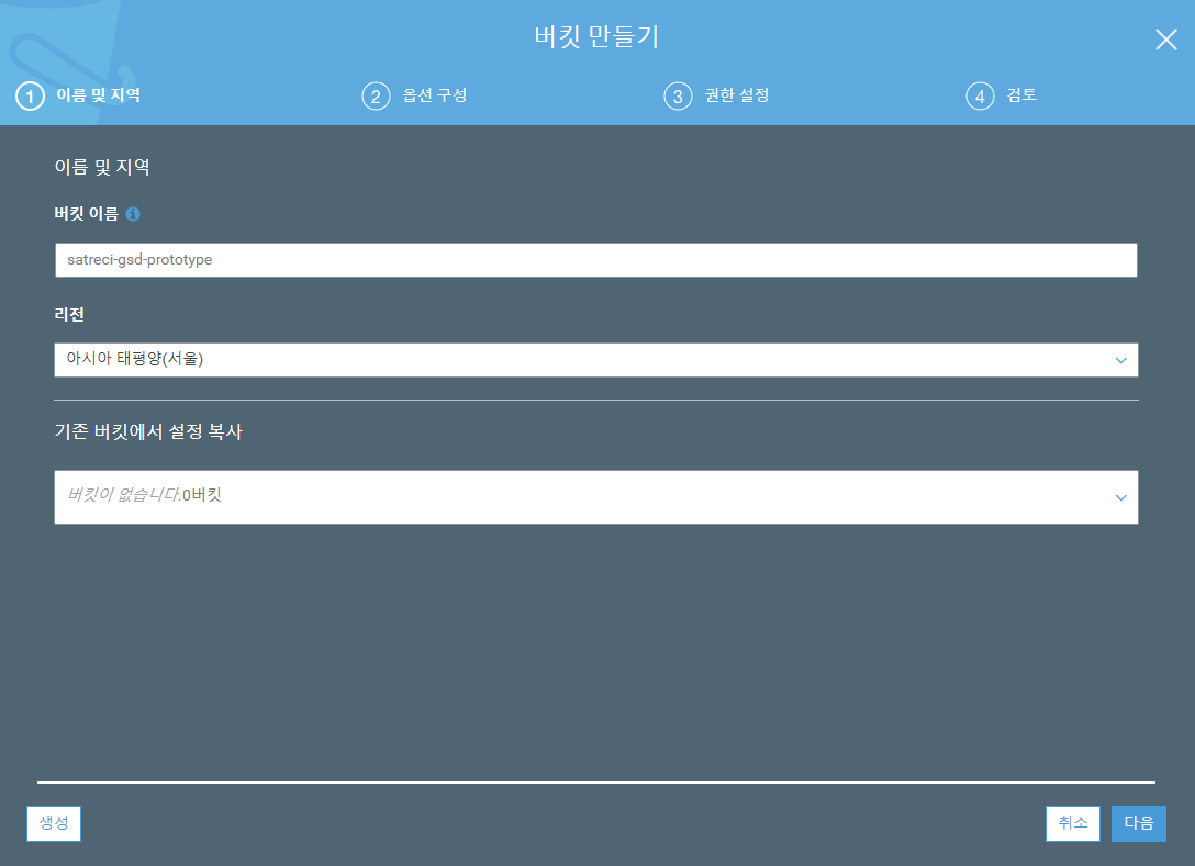 1단계: 이름 및 지역 - 버킷 이름 설정