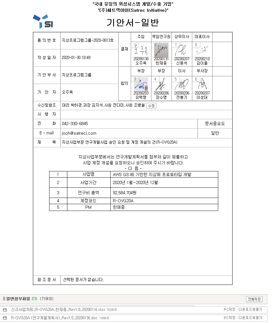 - 과제의 팀장이 승인을 수행함. 본 샘플의 경우, 과제 PM 이 투입 인력들의 팀장이기도 해서 바로 승인 과정 수행