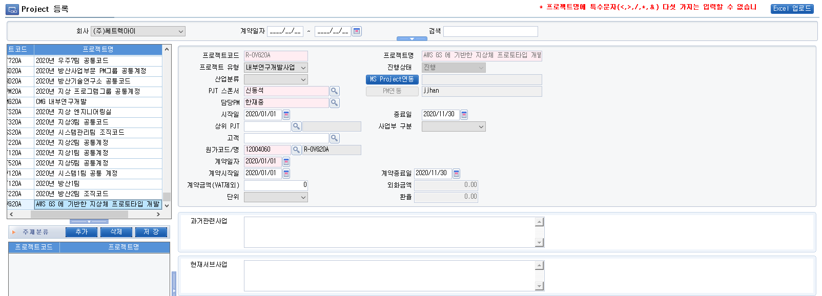 - PMS 에서 원가코드를 기안에 입력한 과제코드로 설정하여 등록 및 승인 요청 수행