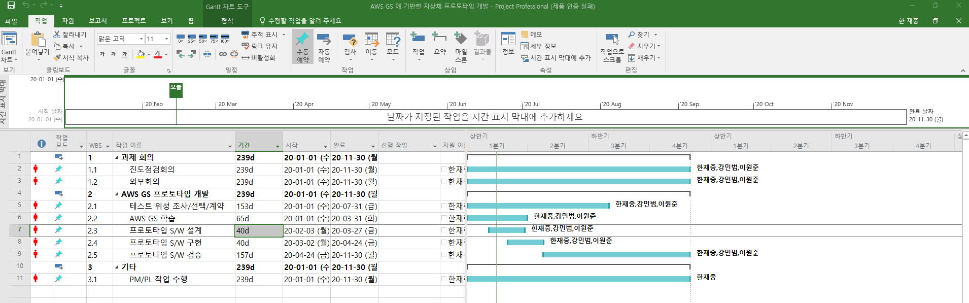 - 연구개발 계획 시에 작성한대로 WBS 생성 및 자원 투입