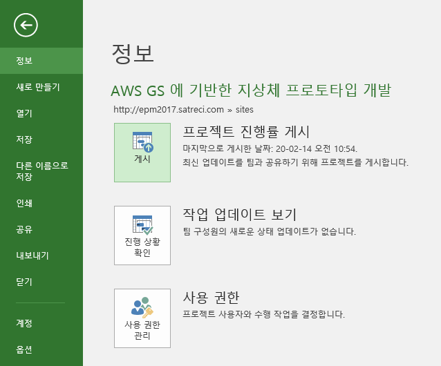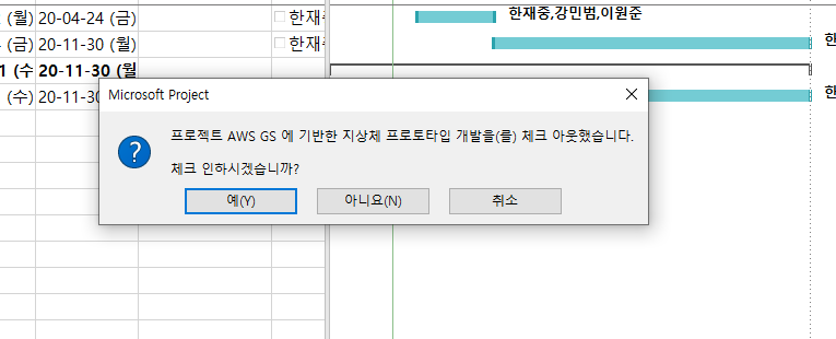 - MS-Project 를 종료할 때는 반드시 체크인을 해 줘야 함