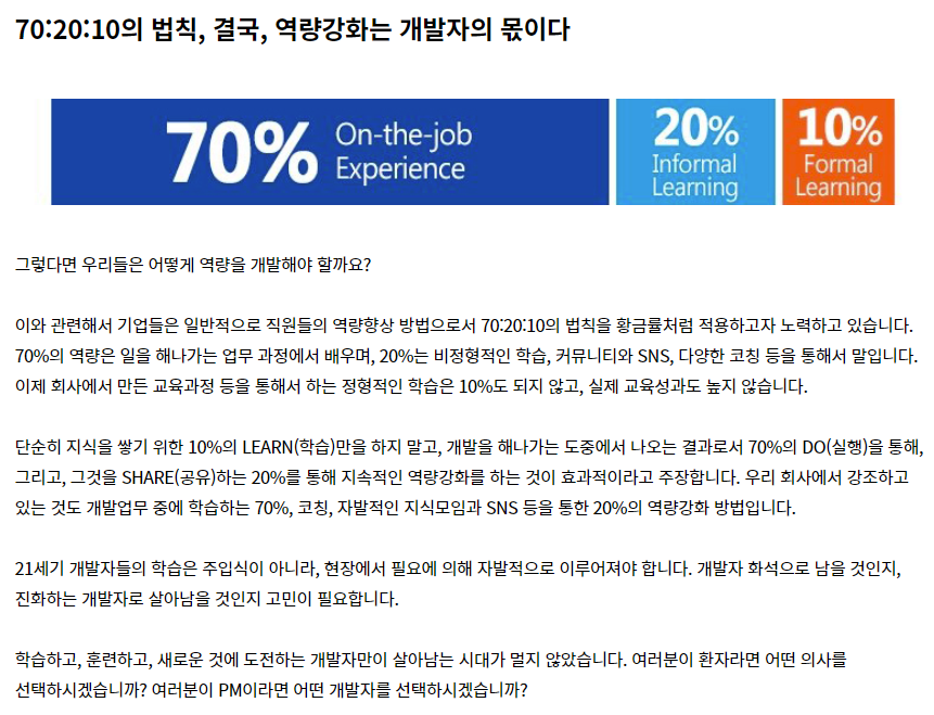 - Informal Learning 이 주가 되도록 실 운영이 필요함