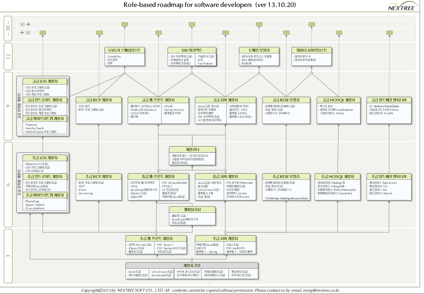- 2013년 nextree 회사에서 정의한 SW 개발자 로드맵 (현재 nextree 는 회사가 없어진 듯 함)