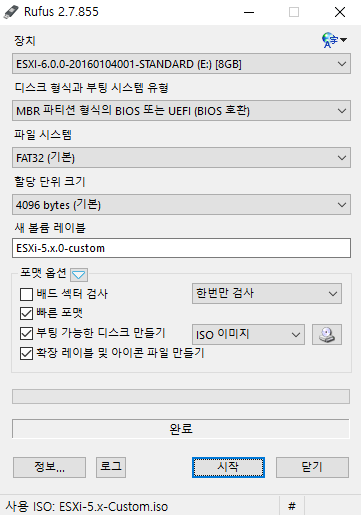 - 아래의 페이지를 참고하여 커스터마이징 한 ESXi ISO 파일을 신규 생성하여 사용했음
