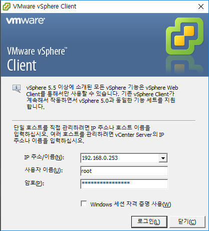 - VMware vSphere Client 6.0 Update 1b: VMware-viclient-all-6.0.0-3249451.exe 를 특정 PC 에 설치