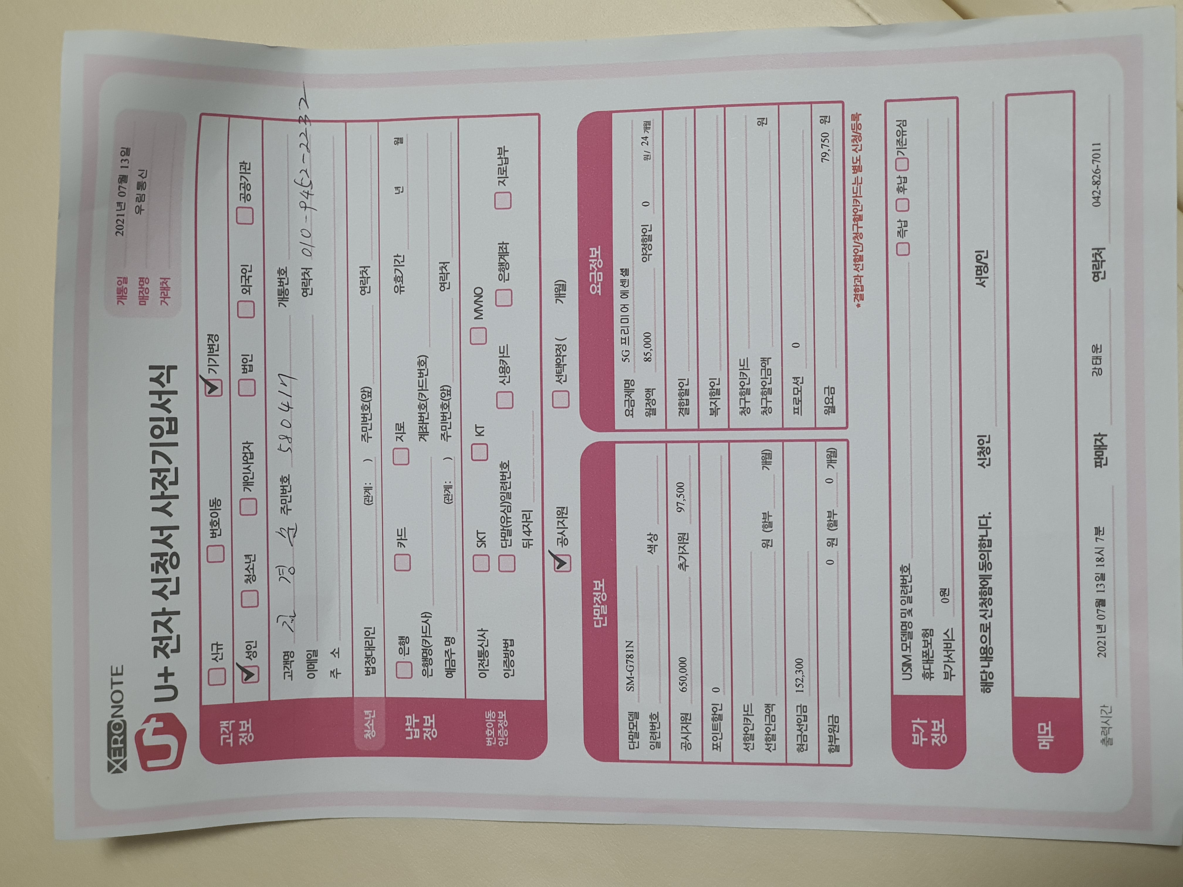 | 기종 | 통신사 | 개통조건 | 문서/사진 | 개통지점 |