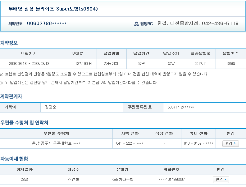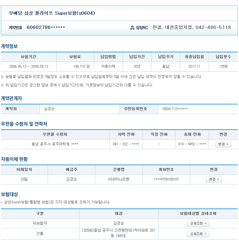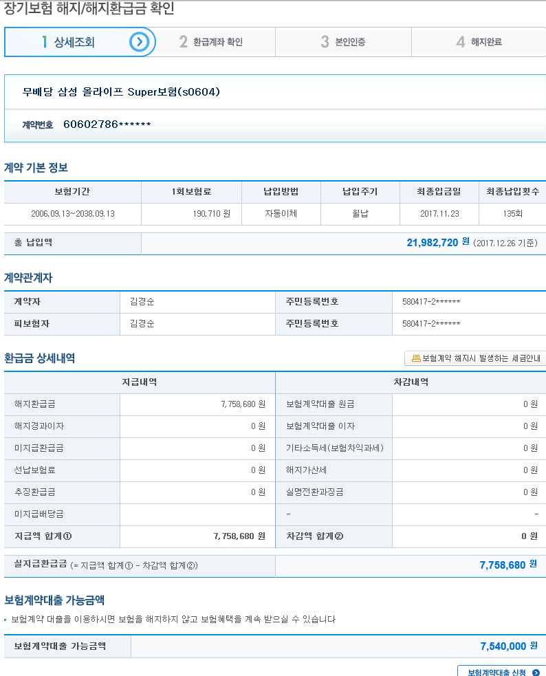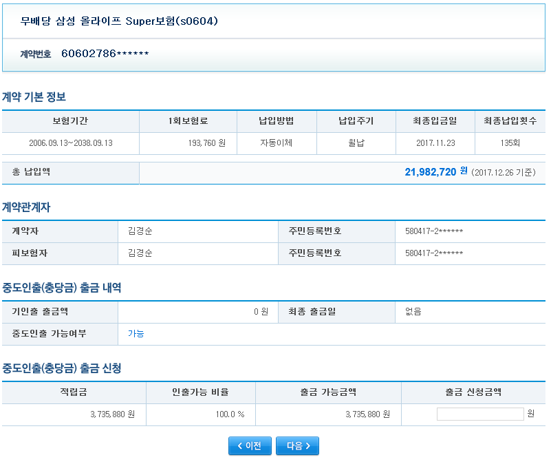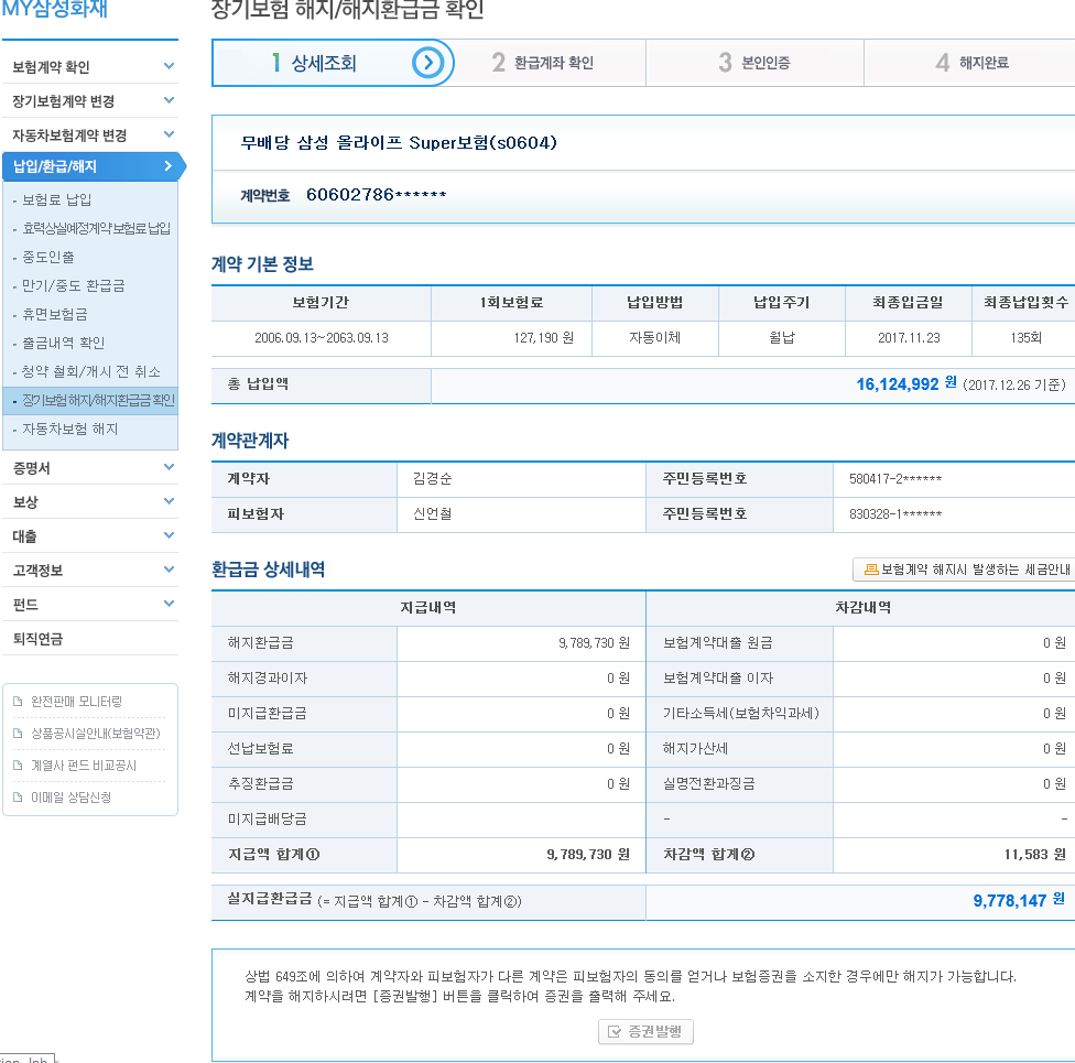 | 삼성화재 | | | | 장기보험해지/해지환급금확인