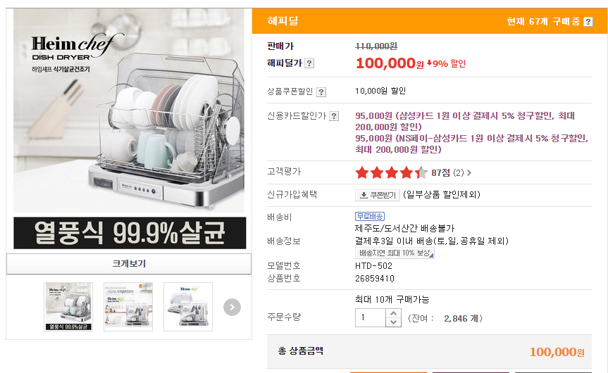 | 결제액 | 95,000원 (삼성카드) - 포인트 94,050 사용 결제 후, 5% 청구할인 된다고 했음 | |