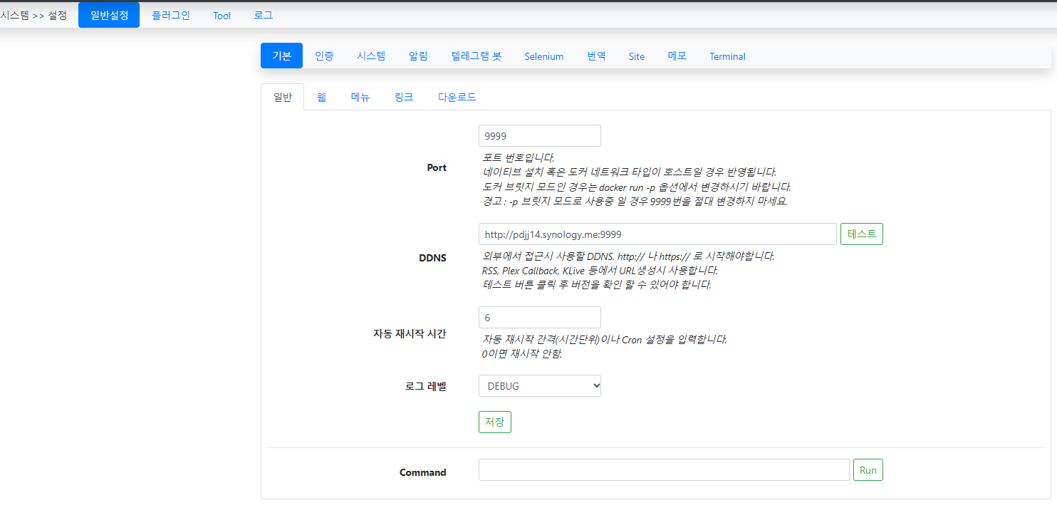 | 시스템 - 일반설정 - 기본 - 웹 | |