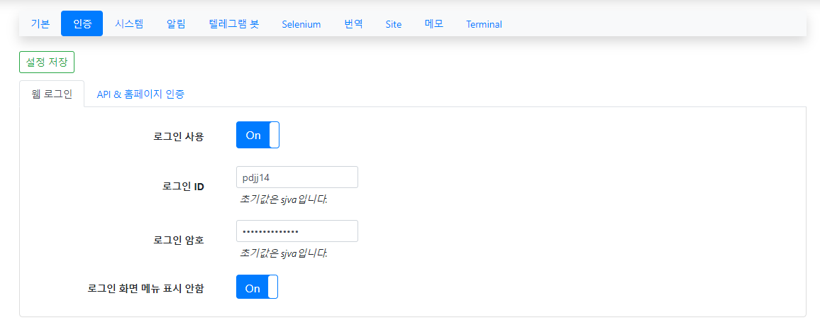 | 시스템 - 일반설정 - 인증 - 웹 로그인 | |