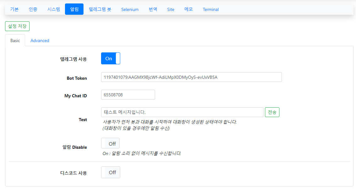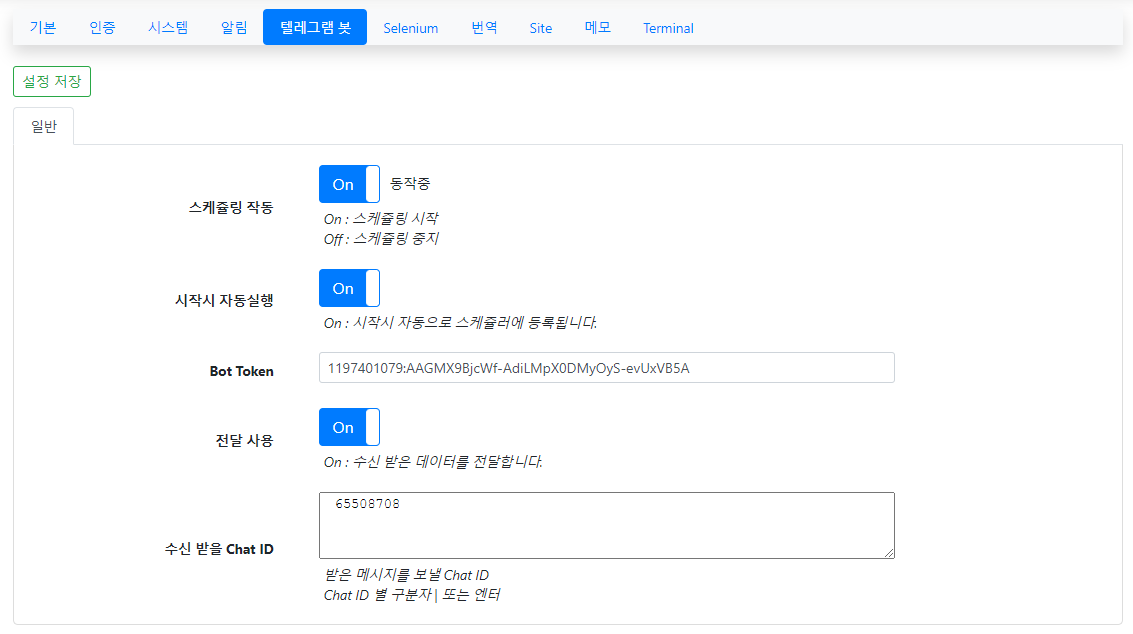 - 전달 사용은 'off' 권장 → 이해할 수 없는 텍스트가 마구 전송 됨