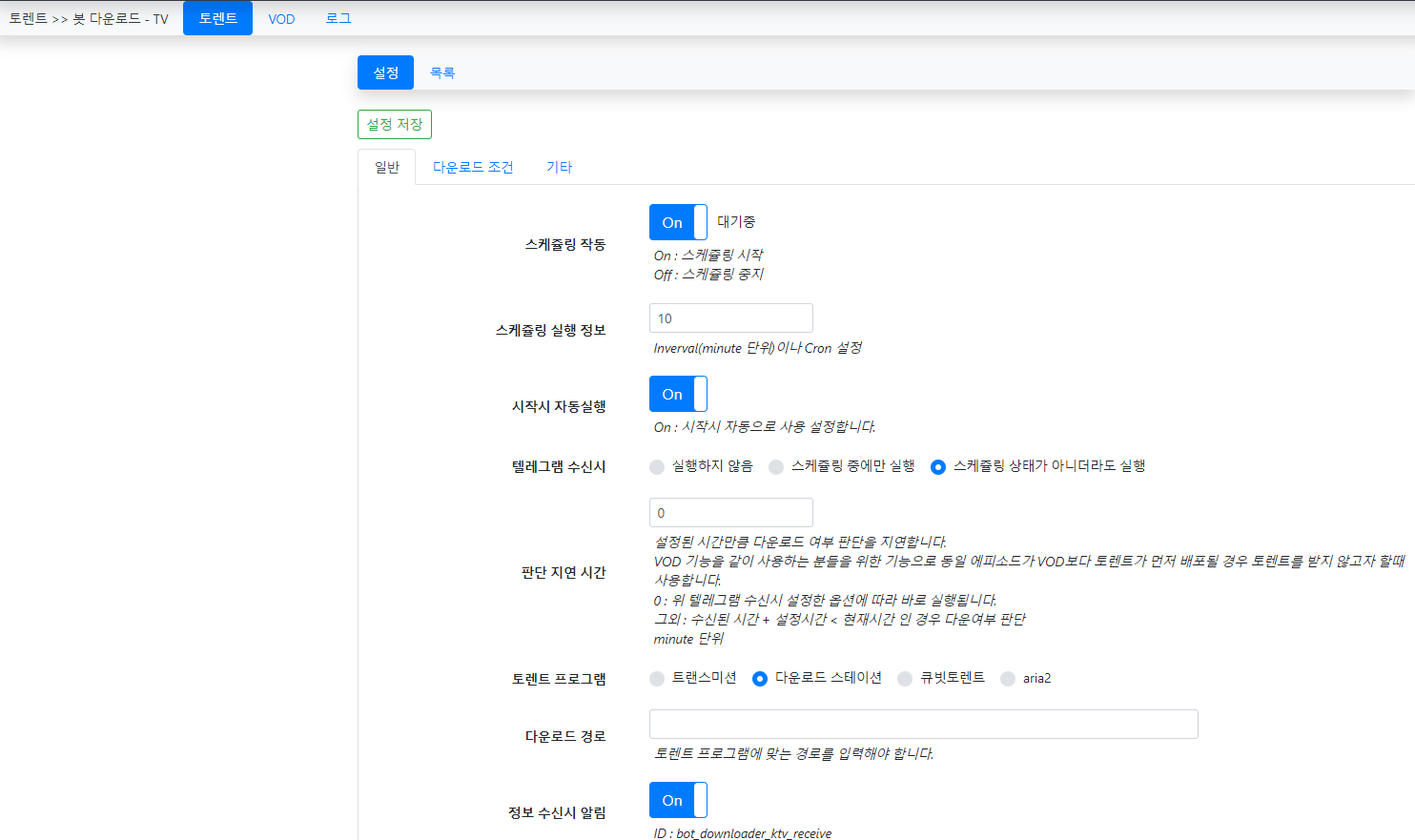 | 시스템 - 일반설정 - 기본 - 다운로드 | |
