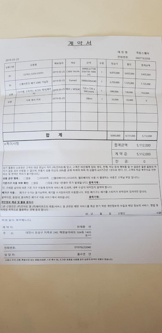 | ESTRO EDITH IS354 | 좌석 하단 가죽 패임 및 스티치 올 나가는 현상 | 3,435,000 원 (삼성카드 결제 취소) |