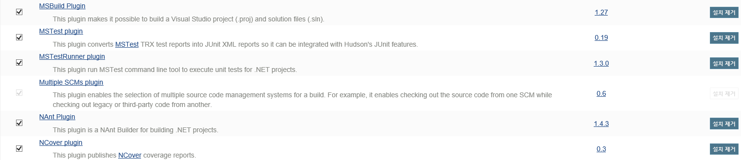 Jenkins 웹페이지에 Admin 계정으로 로그인<Jenkins 관리> → <플러그인 관리> 로 이동<설치 가능> 탭으로 이동하여 아래의 플러그인을 모두 설치MSBuild Plugin- MSTest plugin