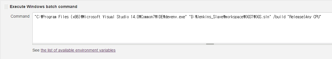 - $(devenv.exe 파일 절대 경로) $(솔루션 파일 절대 경로) /build $(컴파일 조건)