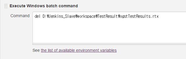 - <Add build step> 에서 <Execute Windows batch command> 를 선택하여 아래와 같이 설정