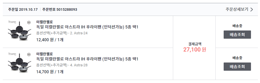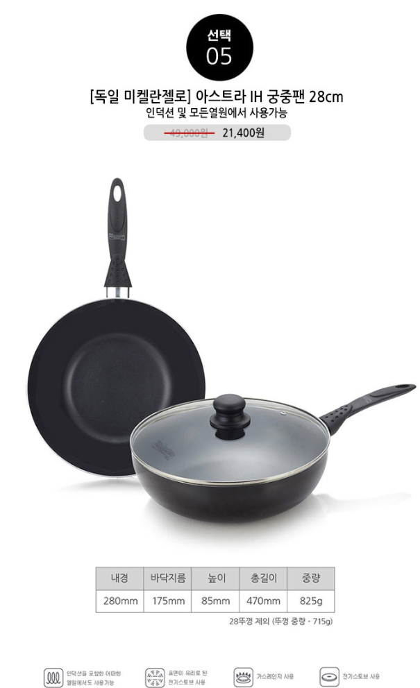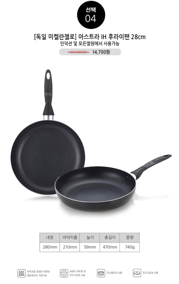 | 2019-10-17 | 정관 블루베리 사이트 | 독일 미켈란젤로 아스트라 IH 후라이팬 24cm/28cm | 24cm → 12,400원 (정관 복지포인트 사용) 28cm → 14,700원 (정관 복지포인트 사용) |