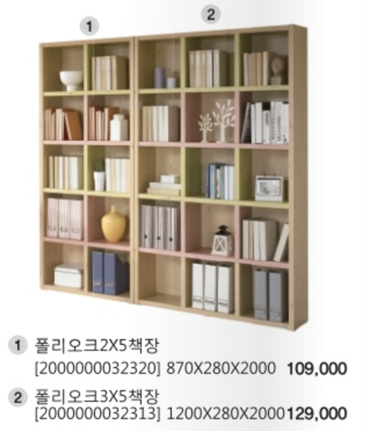| 결제액 | 폴리오크 2x5 책장 (79,000원), 콜리오크 낮은 책장 (99,000원) | 카탈로그 대비 각 3만원, 4만원 저렴하게 구입 |