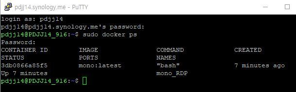 아래의 샘플 화면에서 mono:latest image 에 대한 '3db0866a85f5' 가 container id 임